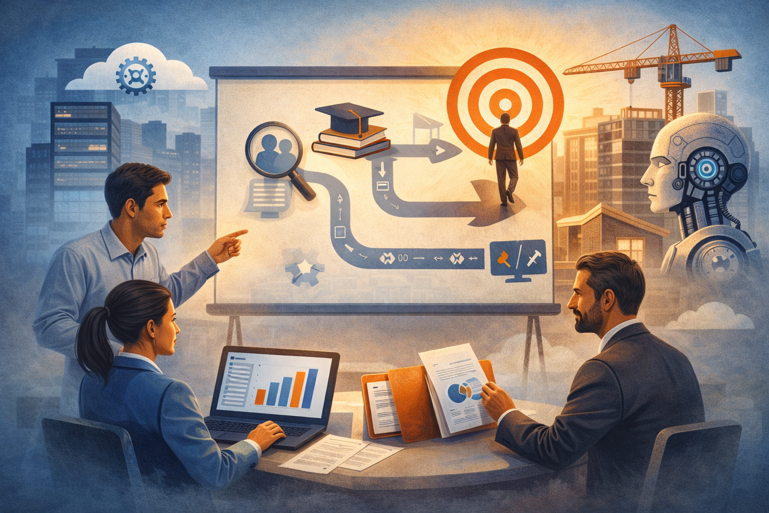 Como a Digicad apoia essa etapa: A Digicad oferece pré-testes de nivelamento e personalização de escopo para treinamentos corporativos. Antes de definir a trilha, a escola ajuda a identificar o ponto de partida real de cada equipe — o que evita desperdício de tempo e orçamento.