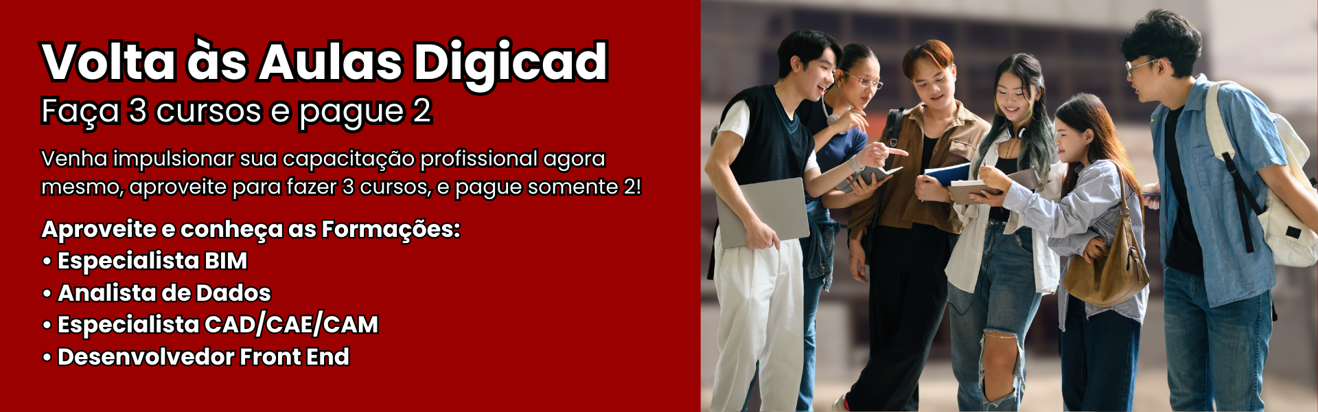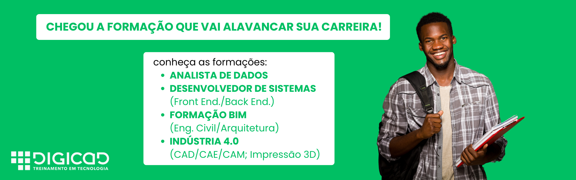 A DIGICAD conquistou um reconhecimento do mercado pela qualidade de seu centro de capacitação profissional. Desta forma, vários de nossos clientes corporativos solicitam que façamos a divulgação de vagas de emprego que exijam conhecimentos relativos aos conteúdos de nossos cursos.